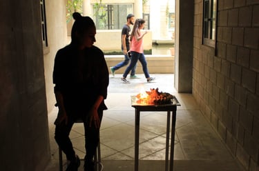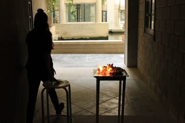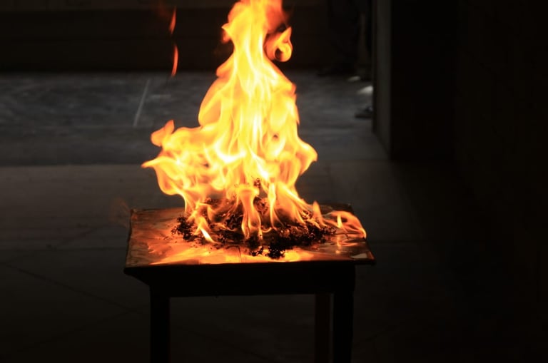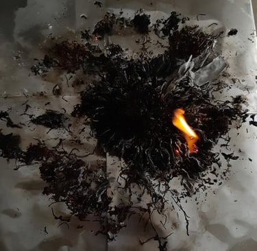 This work was activated through the performance from my wonderful friend and collaborator, Sadia, where the act of setting the piece alight became a quiet ritual of release. As the materials burned together, what remained was neither destruction nor memory, but a trace of both - an impermanence of the act itself.