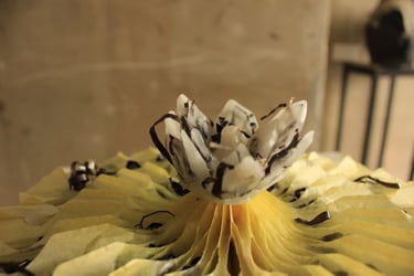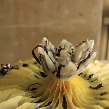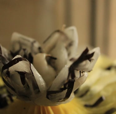 A lotus, sculpted and infused with cassette tape, rests upon a paper flower. These fragile forms, almost waiting for their disruption. The piece began as a meditation on memory; how it records, rewinds, and eventually fades. The cassette holds voices and songs that once carried meaning, while the lotus, a symbol of renewal, sits suspended between preservation and loss.